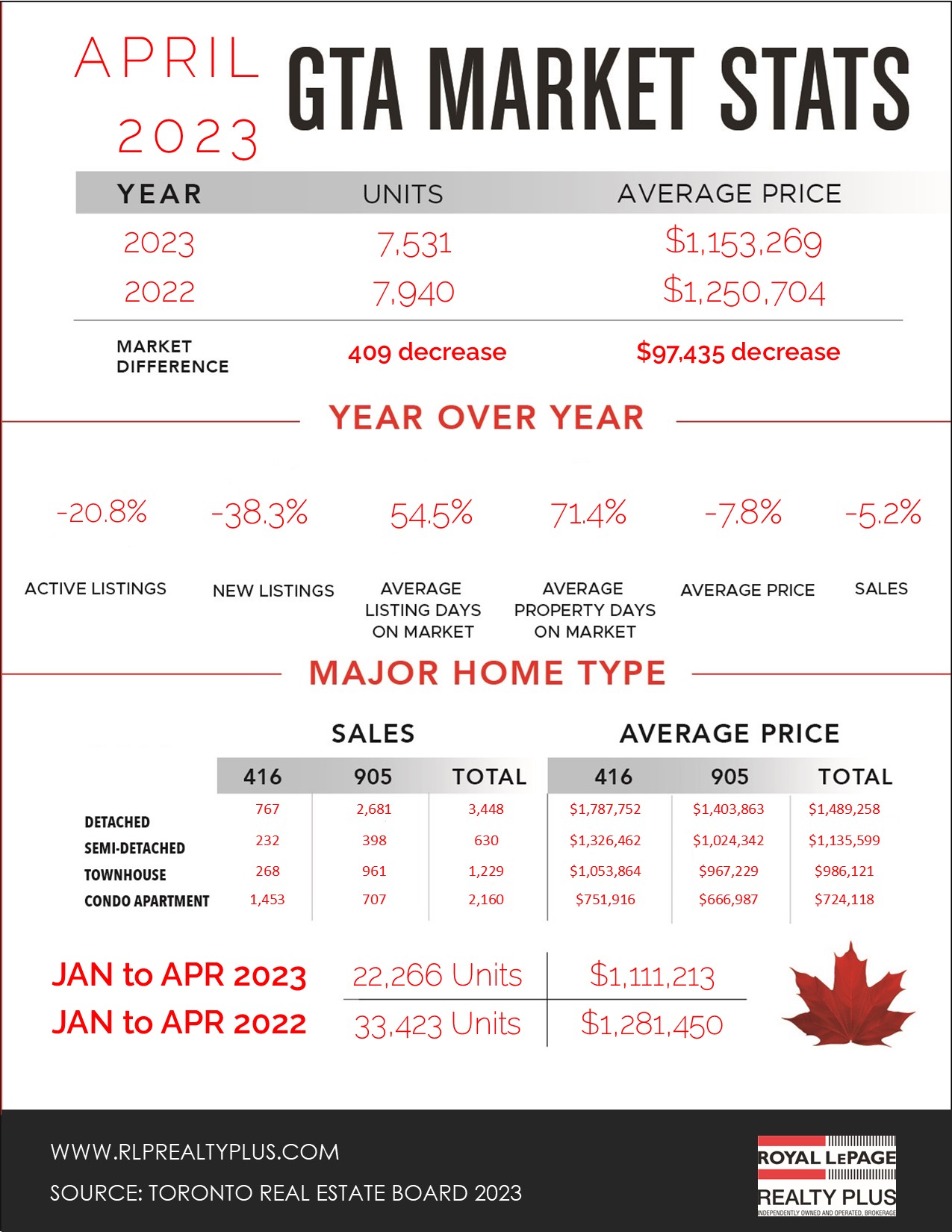 April 2023 GTA Housing Market Stats Sunday May 07th, 2023 Share Tags: GTA Market Statistics - GTA Market Update - GTA Real Estate - GTA Home Prices