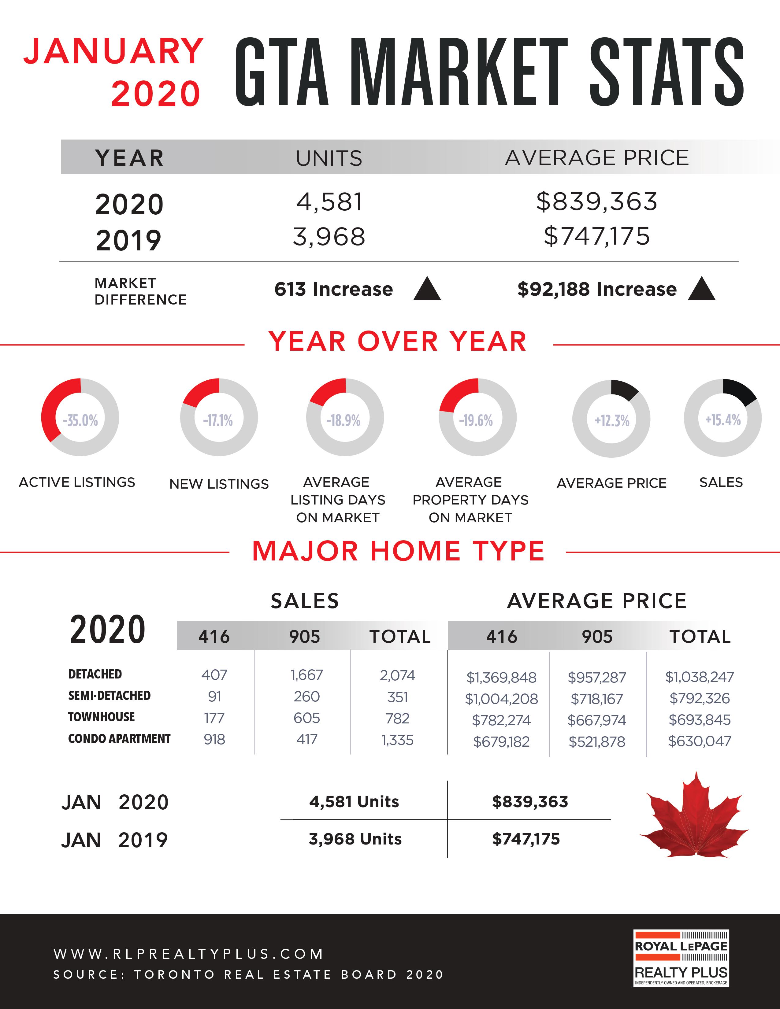 January 2020 GTA Market Stats Thursday Feb 06th, 2020 Share Tags: Oakville Real Estate - Oakville-Burlington Real Estate - GTA Market Statistics - GTA Real Estate