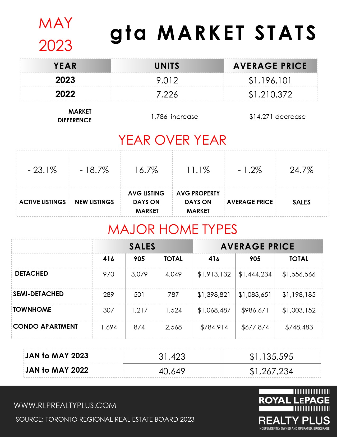 May 2023 GTA Housing Market Stats Thursday Jun 08th, 2023 Share Tags: GTA Market Statistics - GTA Market Update - GTA Real Estate - GTA Home Prices