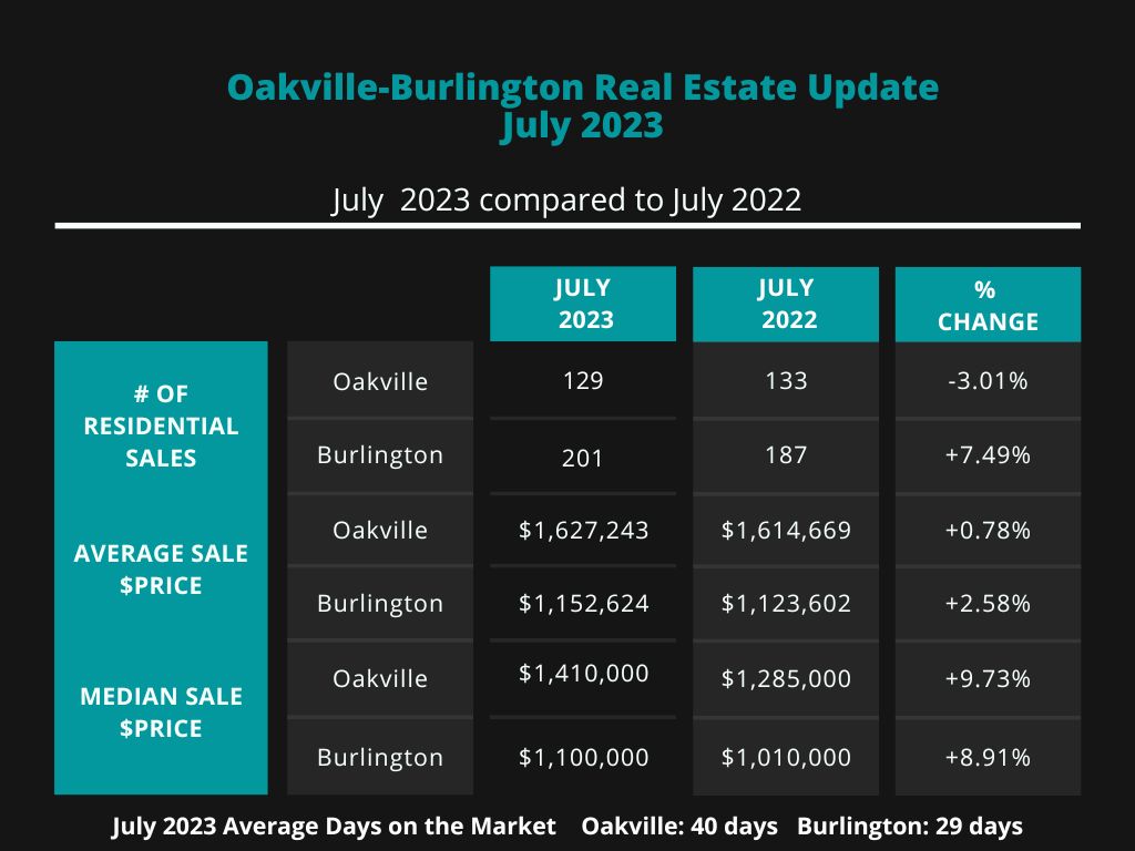 Oakville-Burlington...July 2023 residential re-sale housing sales summary as reported by the Oakville, Milton and District Real Estate Board and the Realtors Association of Hamilton-Burlington...