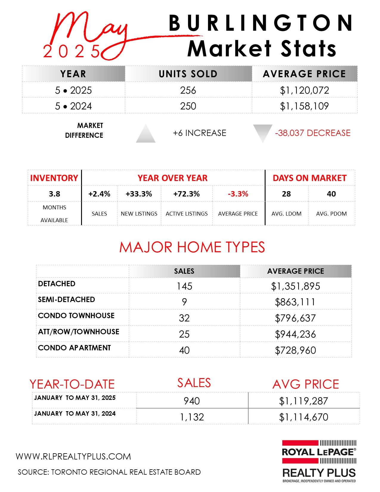 Oakville-Burlington...May 2025 residential re-sale housing sales summary as reported by the Toronto Regional Real Estate Board (TRREB)…