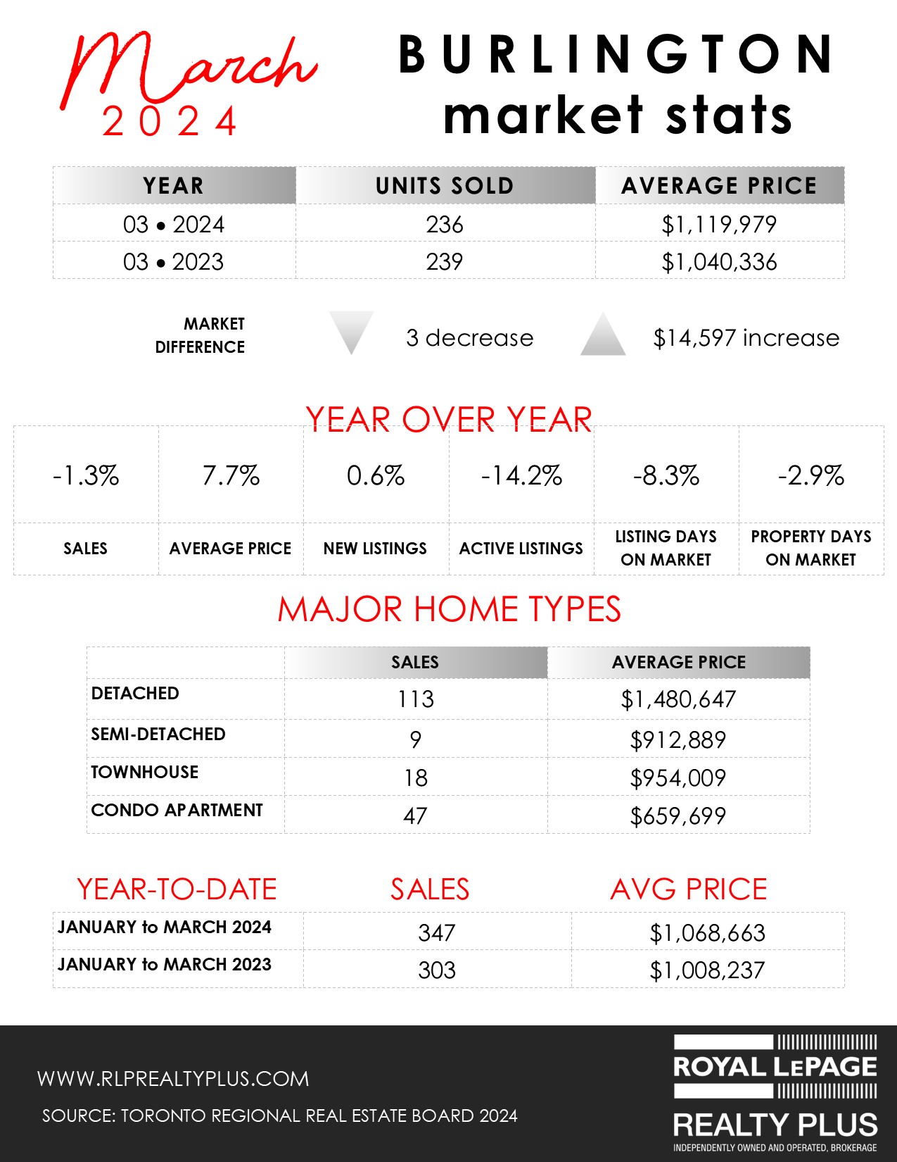 Oakville-Burlington...March 2024 residential re-sale housing sales summary as reported by the Toronto Regional Real Estate Board (TRREB)…