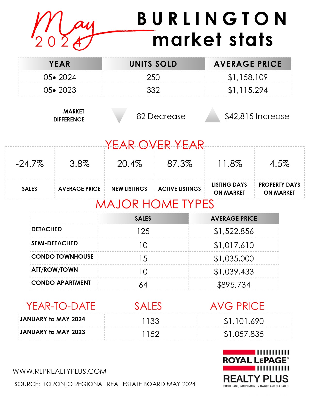 Oakville-Burlington...May 2024 residential re-sale housing sales summary as reported by the Toronto Regional Real Estate Board (TRREB)…