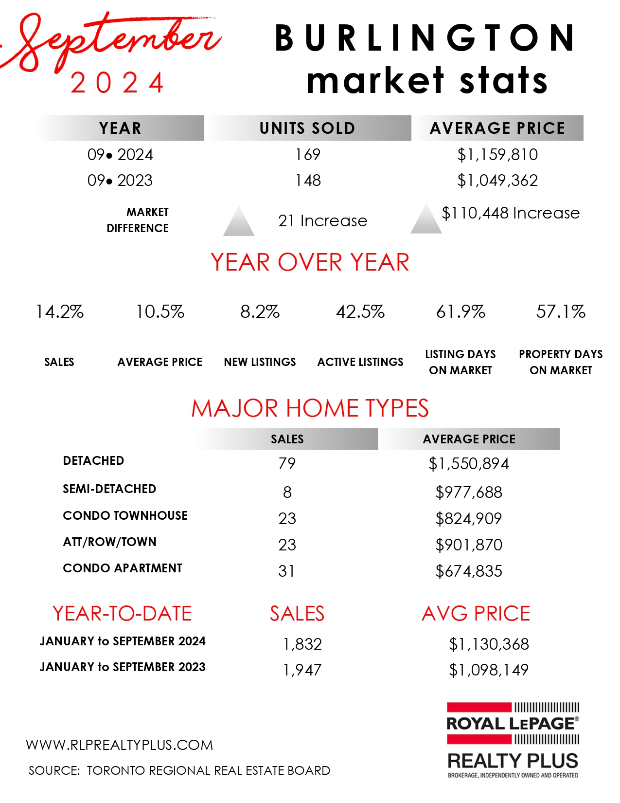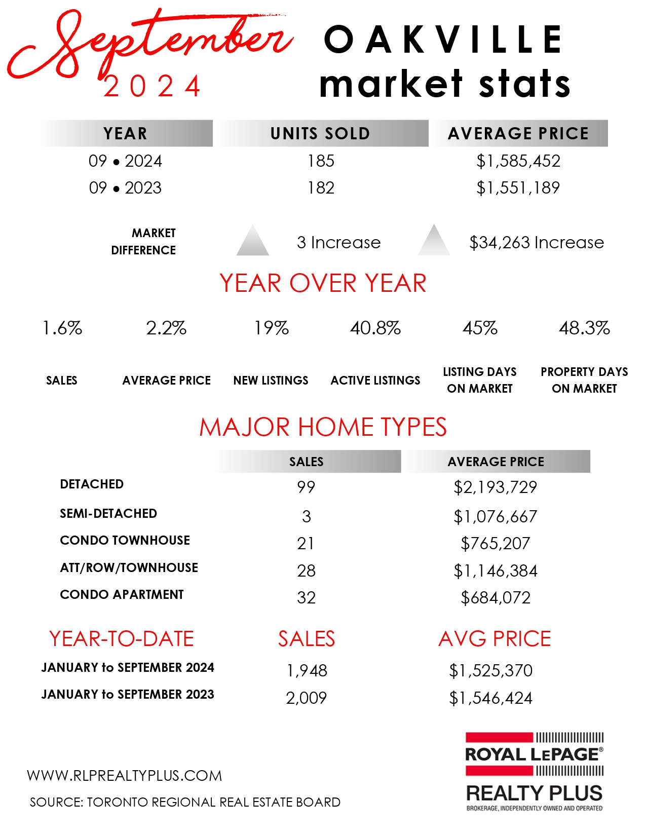Oakville-Burlington...September 2024 residential re-sale housing sales summary as reported by the Toronto Regional Real Estate Board (TRREB)…