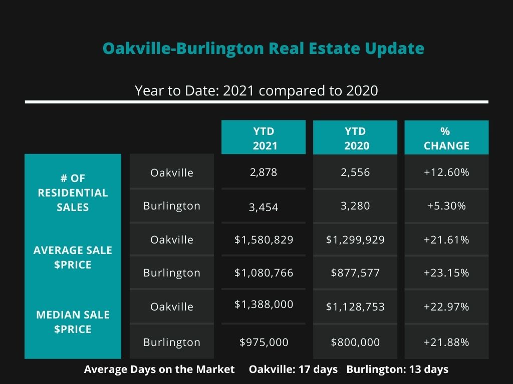 Oakville-Burlington...December 2021 residential re-sale housing sales summary as reported by the Oakville, Milton and District Real Estate Board and the Realtors Association of Hamilton-Burlington...